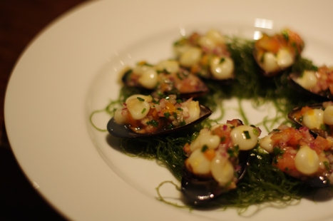 チリ産ムール貝を、白ワインで蒸して
