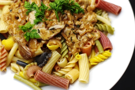 お客様に頂いたポルチニ茸とカラフルな可愛いパスタでまかない作らせていただきました。