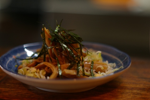 サーフィン始めたての頃、お弁当で買った生姜焼きになぜか入っていたメンマ。