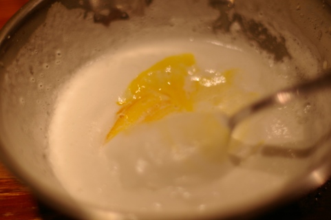 卵白をフォークで泡立てて