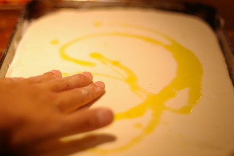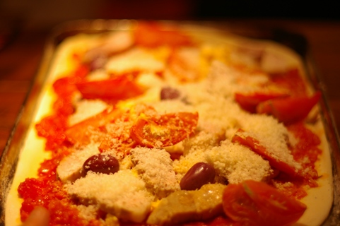 チーズを挟んで、濃厚なミルクを流しいれオーブンで焼く。