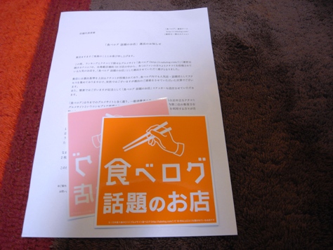 『食ベログ』さんから、「食ベログ 話題のお店」選出のお知らせ