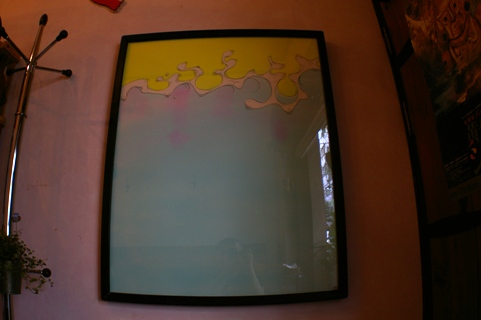 アクリル板、絵、ベニヤ板で約30mm