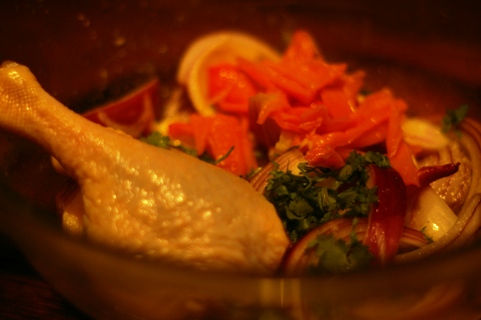 1時間ほど鴨肉と一緒に漬け込みます。
