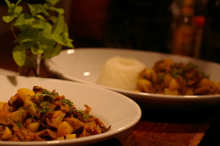前者は、本州では非常に手に入りにくい、山羊の内臓を使ったお料理。