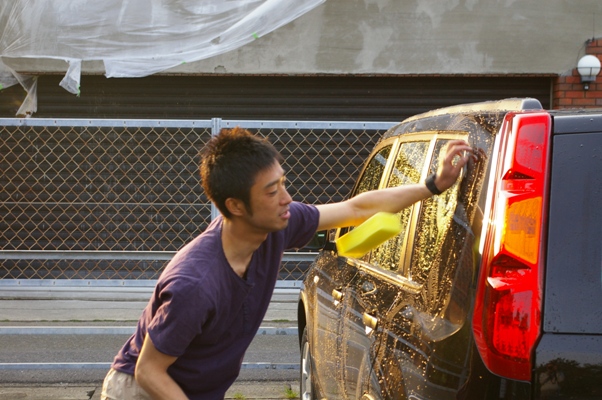 (洗車を見学)